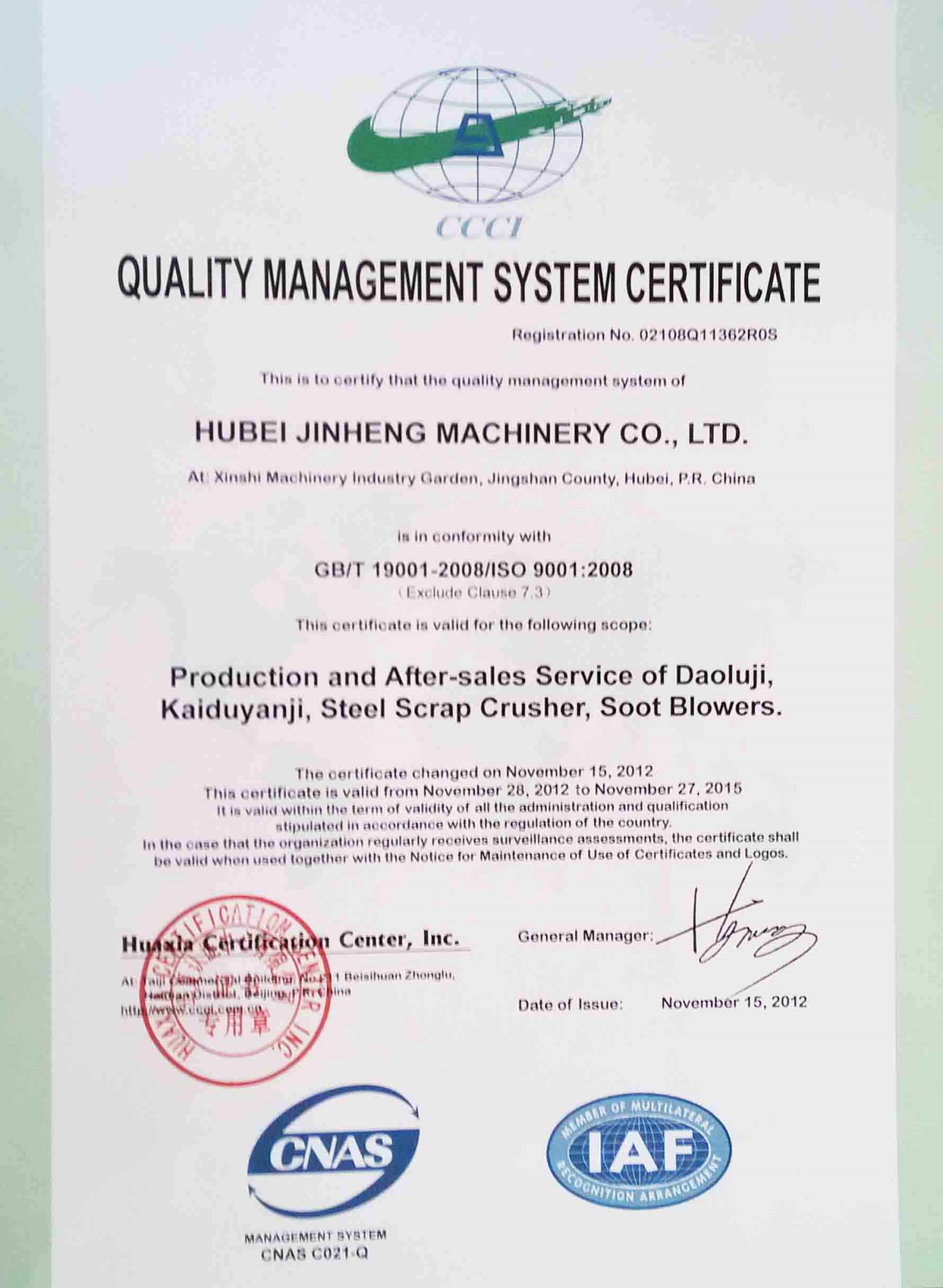 公司十分注重質量管理體系的建設,本著“品質保證一切,誠信鑄就未來”的 發(fā)展宗旨,先后完善了IS09001和SO14001雙體系建設,獲得多項國家發(fā)明專 利和實用新型專利,是湖北省高薪技術企業。